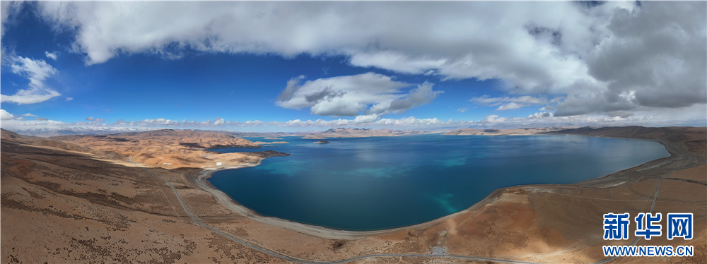 空中俯瞰阿里地区普兰县的拉昂错。新华网发