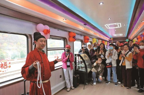 “秦岭号”专列以“普惠价格、适老服务”为核心定位,通过发挥铁路规模化运营优势,在保证出行品质的情况下,将12天多城联游的产品价格进一步压缩。“第一次和这么多老年伙伴一起坐专列旅游。列车专门设置了娱乐休闲车厢,提供棋牌等文娱设施,还安排了汉唐舞蹈表演、唐风魔术等文艺活动,打造‘移动的文艺沙龙’,让旅途不再枯燥。”旅客王珠珺说,“一次能去这么多地方,节奏也不快,这样出门很省心。”