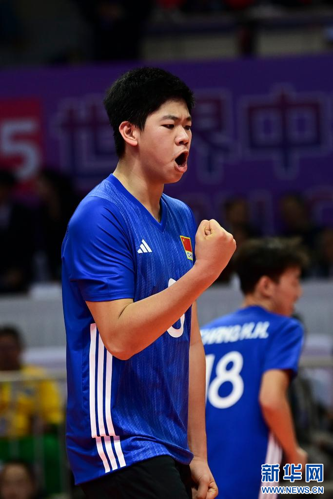 12月5日,中国男子一队球员陈泽昊在得分后庆祝。新华社记者 邹竞一 摄pagebreak