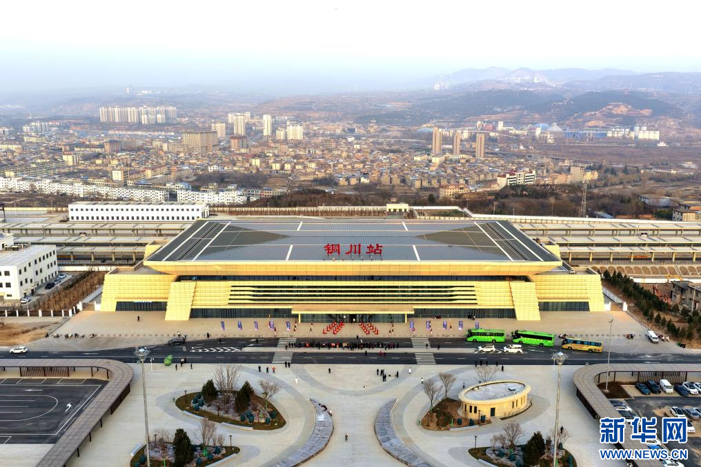 12月24日拍摄的西延高铁铜川站(无人机照片)。