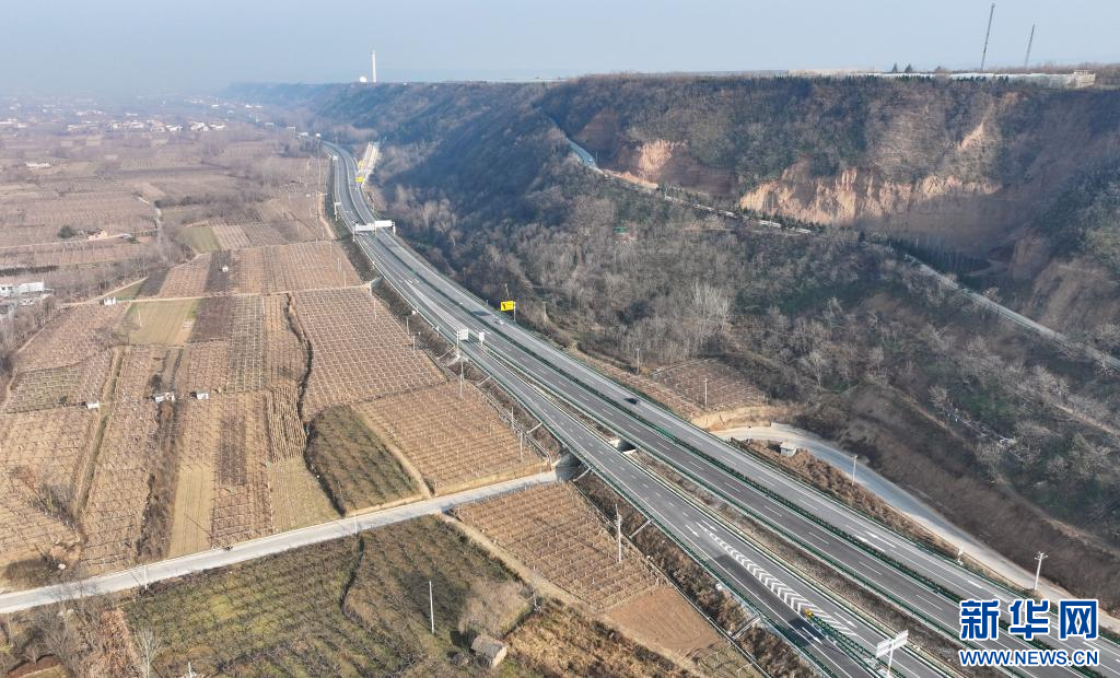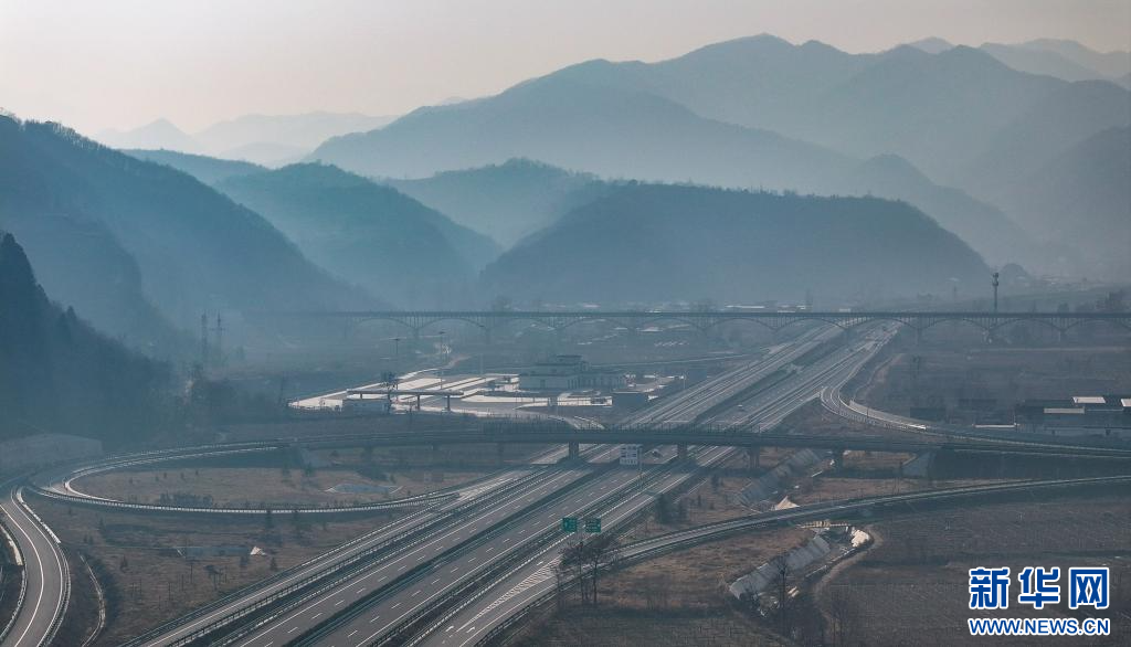 这是位于陕西省宝鸡市眉县境内的眉太高速路段(12月29日摄,无人机照片)。