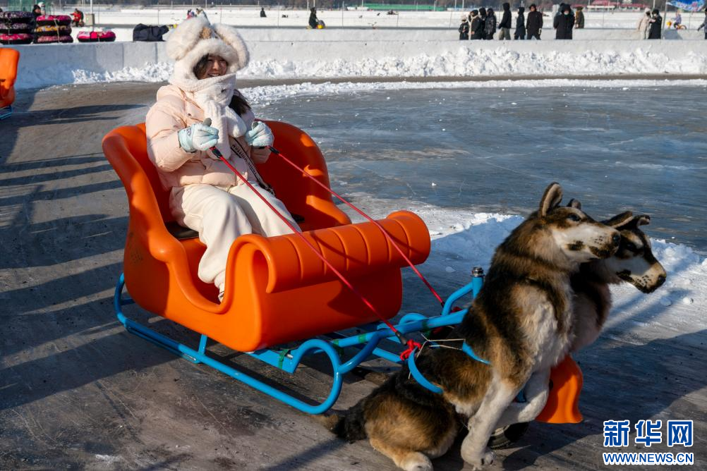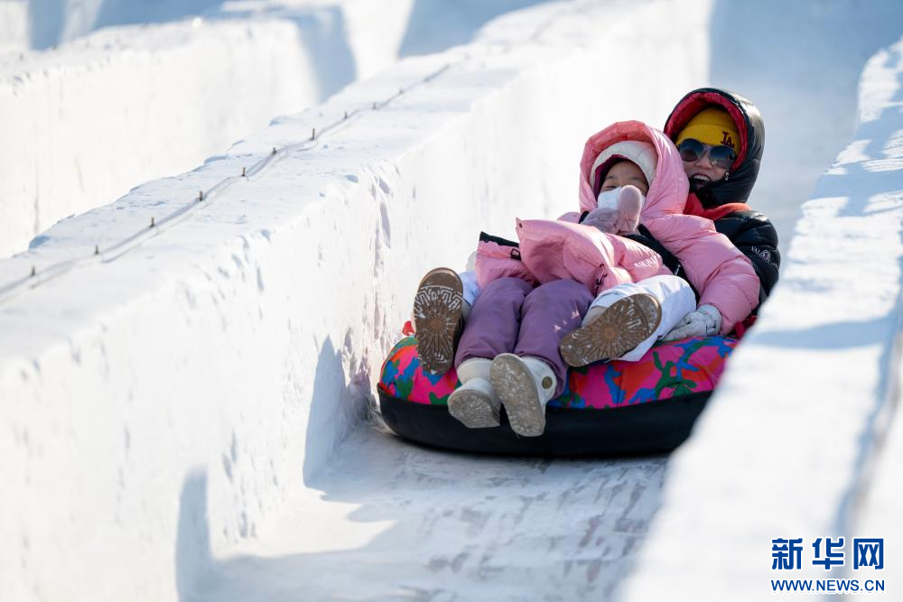 2026年1月1日,人们在2026第八届哈尔滨松花江冰雪嘉年华园区内体验冰雪娱乐项目。