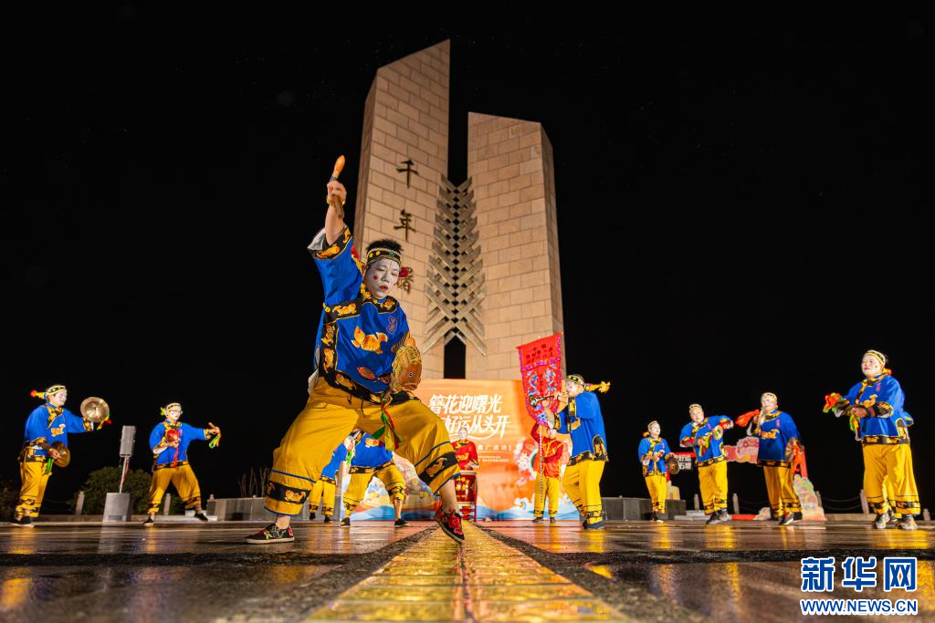 2026年1月1日,在浙江省温岭市石塘镇千年曙光园,当地群众表演大奏鼓,迎接新年。