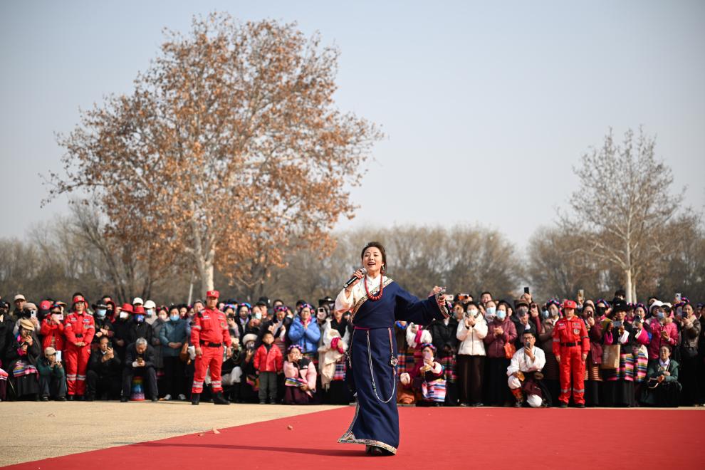 1月17日,来自西藏自治区昌都市基层文艺团体的演员在西安大明宫国家遗址公园演唱歌曲。