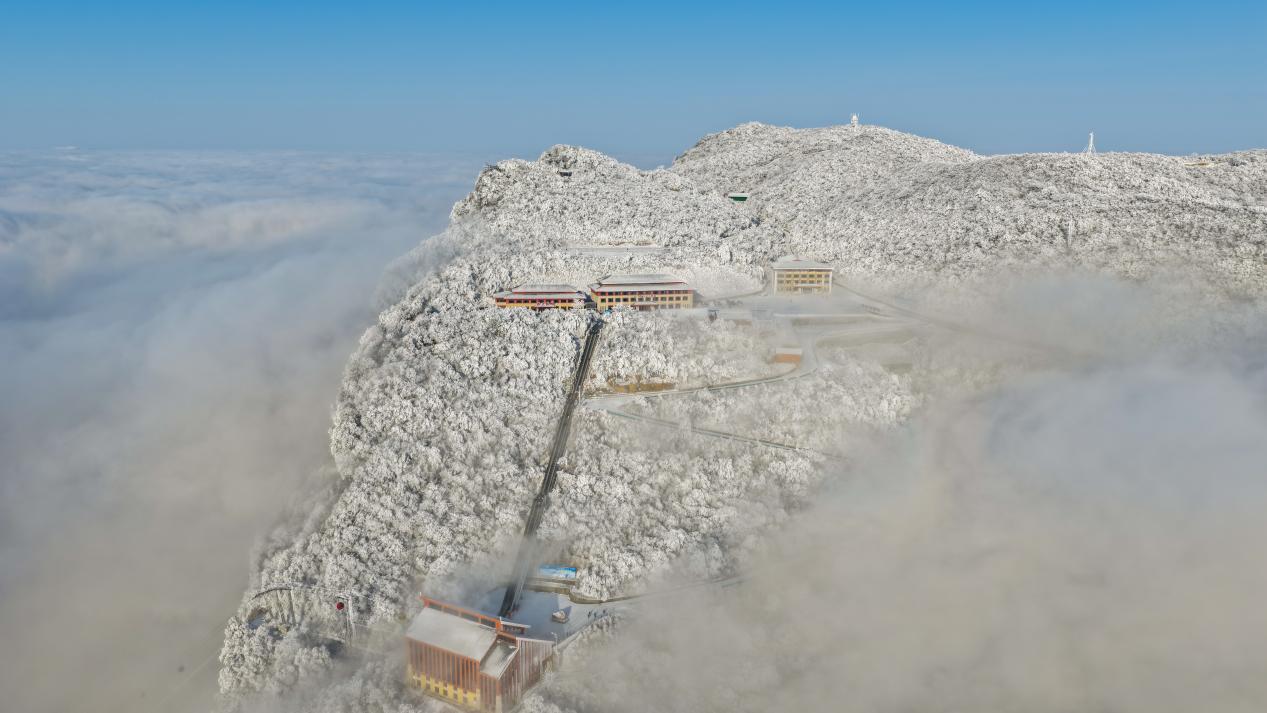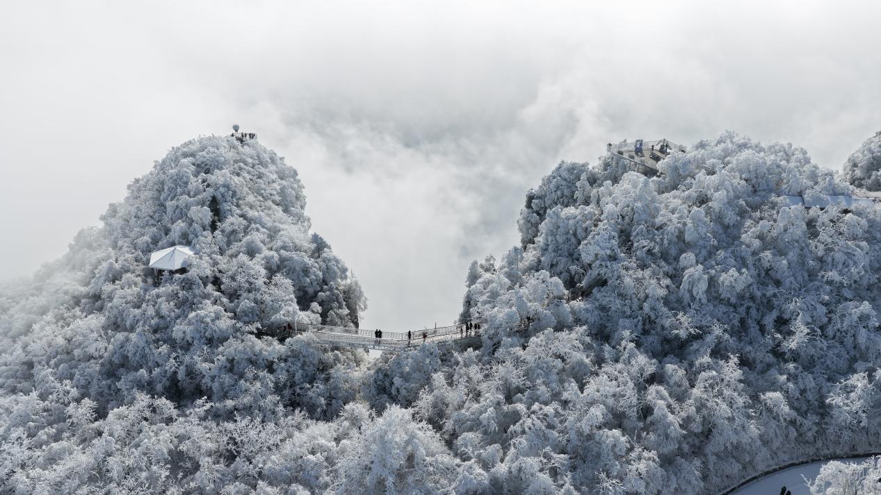1月23日,整座山巅被雾凇覆盖,云海如浪铺展于脚下,冬日仙境吸引游客观光打卡。(宋晓丽 摄)pagebreak