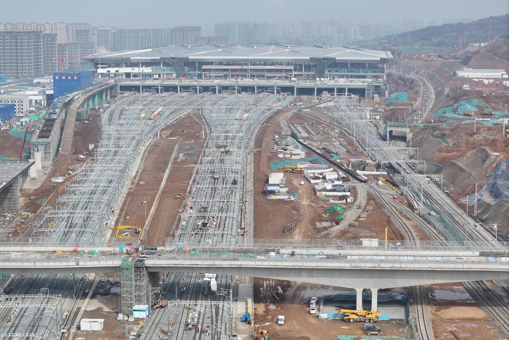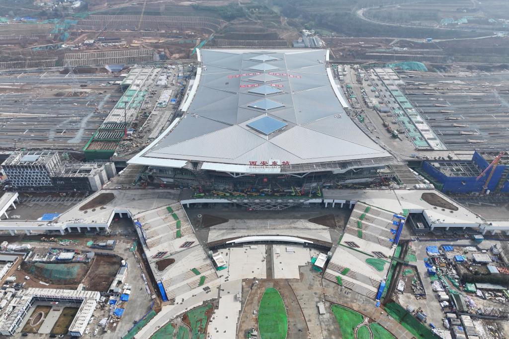 建设中的西安东站(2月26日摄,无人机照片)。