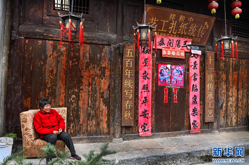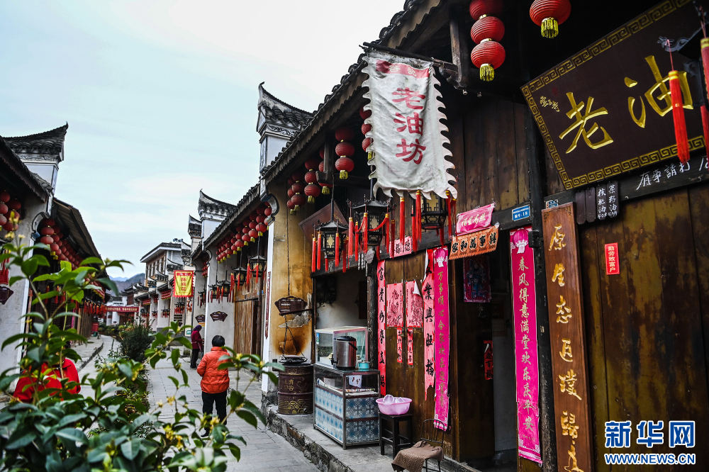 11月24日,云盖寺镇老街前街食品小店在营业中。老街两边是两排整齐对称的老屋乌黑的明厦瓦、平滑的泥墙、斑驳的木板门散发着古老悠远的气息。新华网发(郑煊 摄)