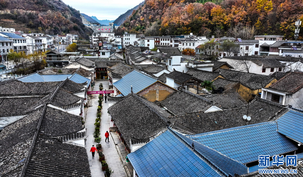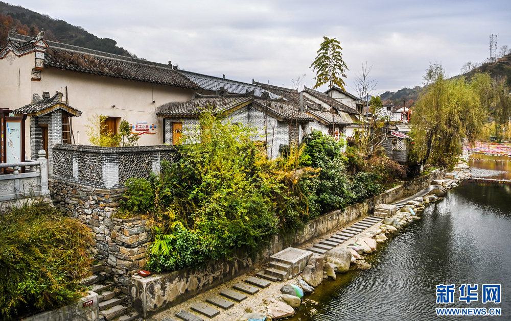 11月24日拍摄的云盖寺镇老街前街河畔。新华网发(郑煊 摄)