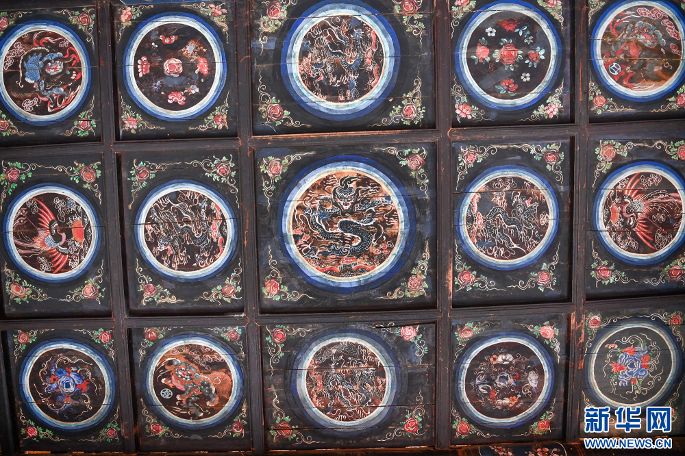 11月24日拍摄的云盖寺内的壁画(局布)、绘画,是镇安仅存的明代彩绘,具有很高的学术价值。新华网发(郑煊 摄)
