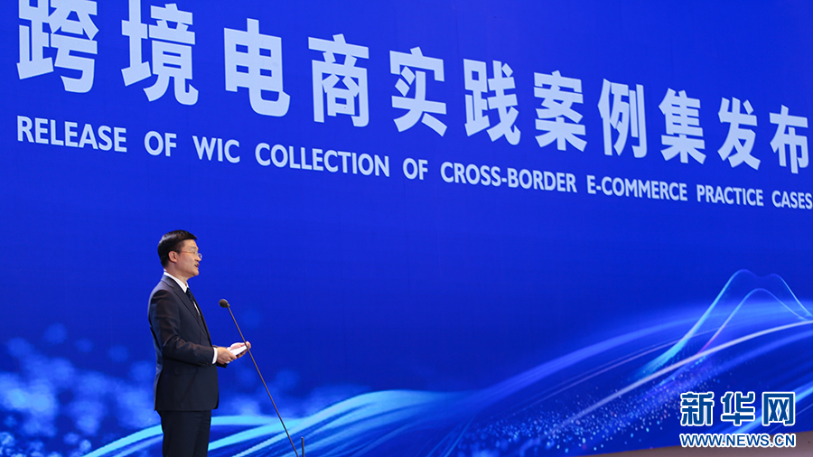 4月16日,在世界互联网大会数字丝路发展论坛上,主持人发布跨境电商实践案例。新华网 杨喜龙 摄pagebreak