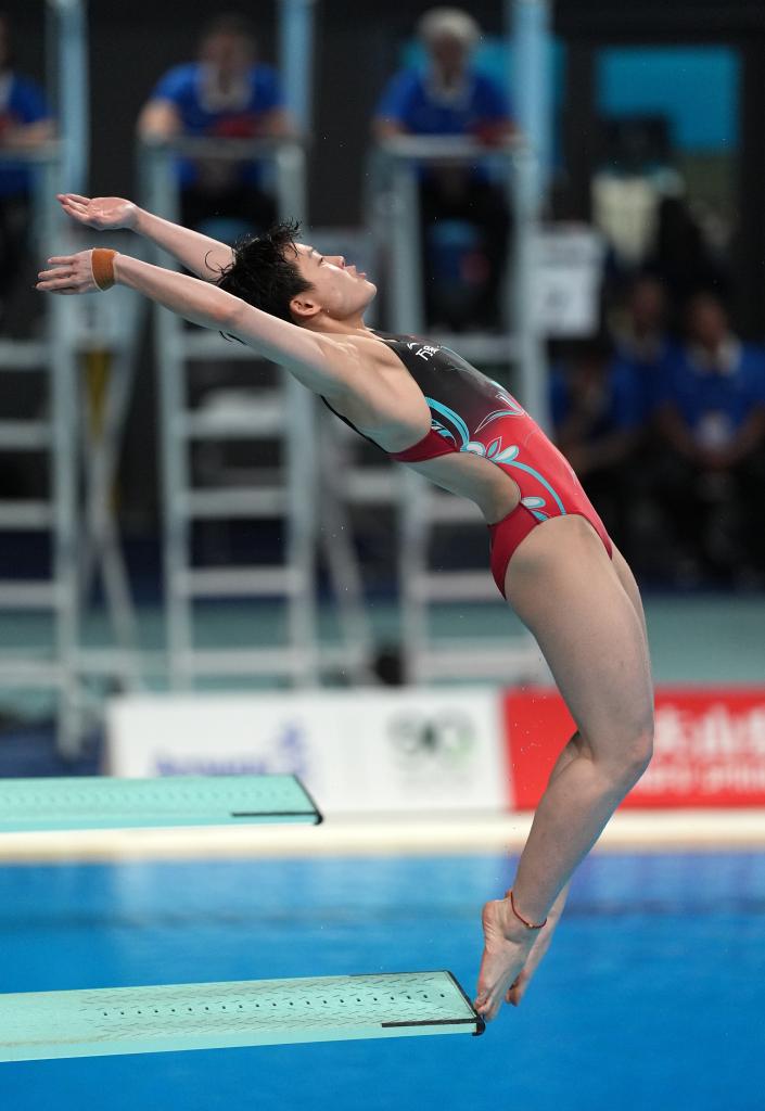 4月19日,陈艺文(左)/杨昊在混合三米板比赛中。