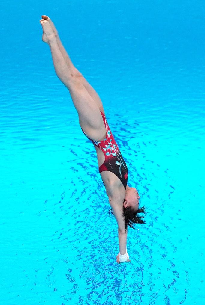 4月19日,陈芋汐(左)/杨昊在混合十米台比赛中。