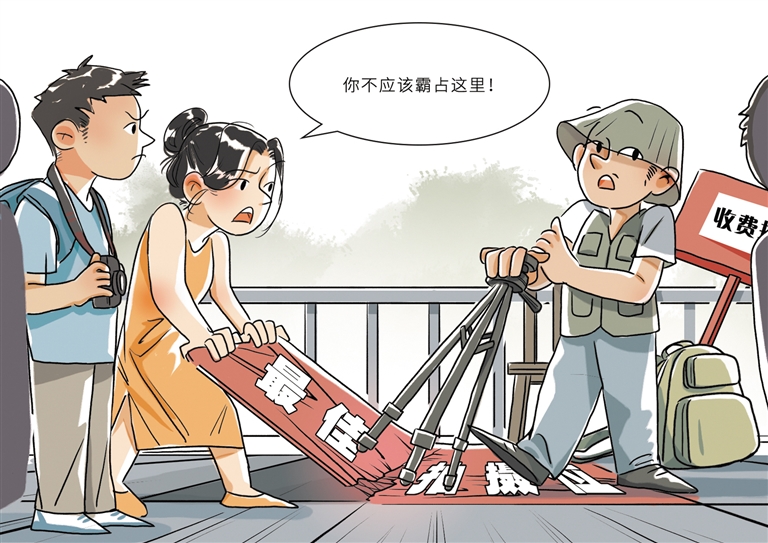 商拍、直播者霸占最佳拍摄点不可取。 田芳昕作