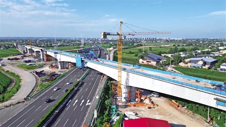 8月9日,航拍清河特大桥跨京昆高速连续梁。记者 许奥博摄