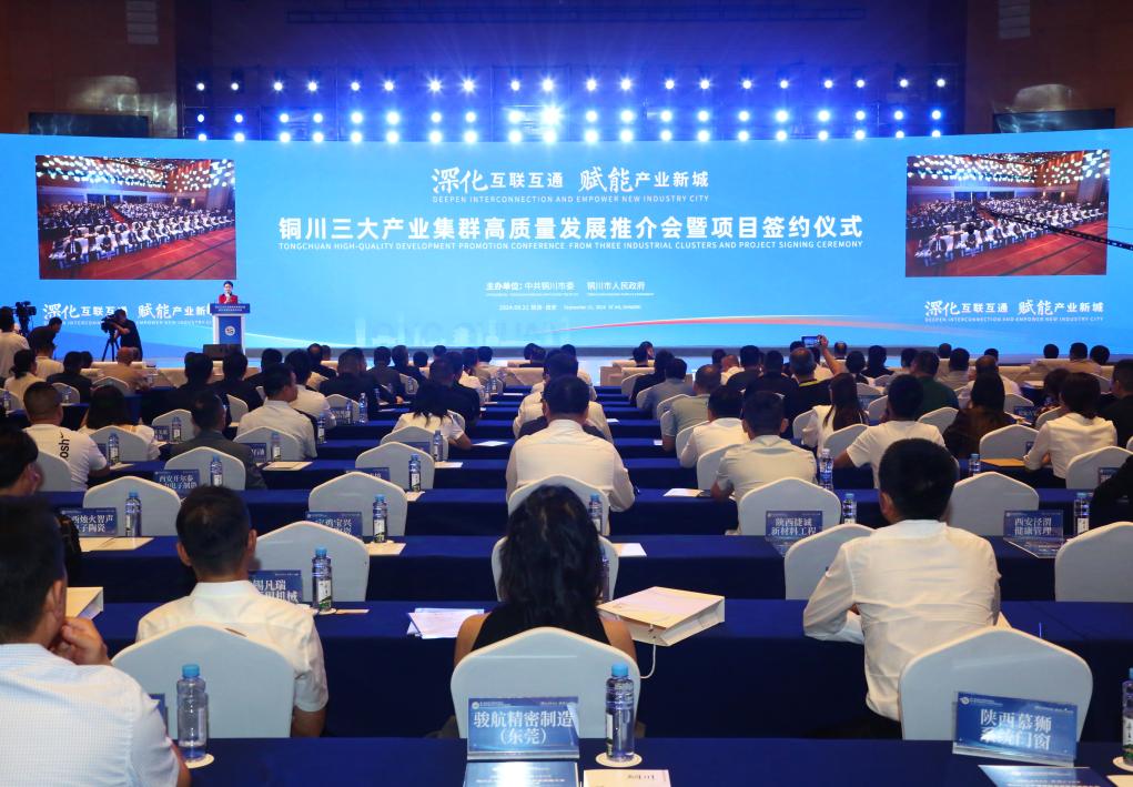新华网西安9月22日电(记者付瑞霞)9月21日下午,以“深化互联互通 赋能产业新城”为主题的第八届丝博会铜川三大产业集群高质量发展推介会暨项目签约仪式在西安举行。