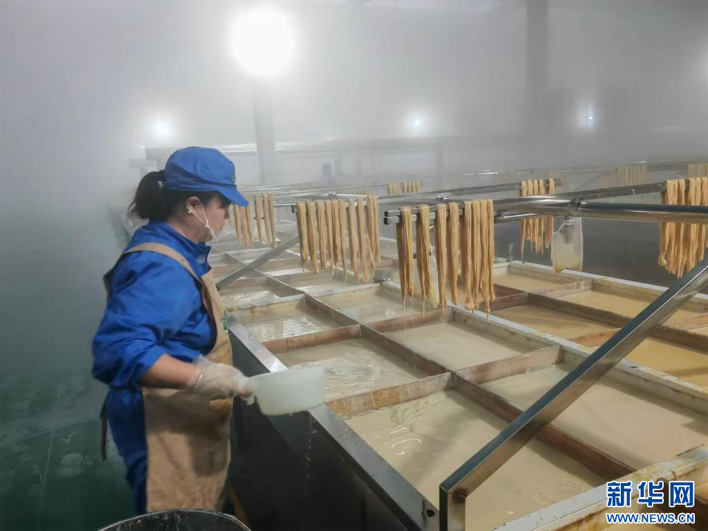 在延安市安塞区,依托陕北地区大豆种植基地,以及当地热电联产项目高温蒸汽资源等优势,一座年产3万吨腐竹的现代化生产厂房拔地而起。走进生产车间,蒸汽扑面而来,上百名工人在110条生产线上手工捞制腐竹,传统工艺和先进设备结合,黄豆变身为高附加值腐竹产品。