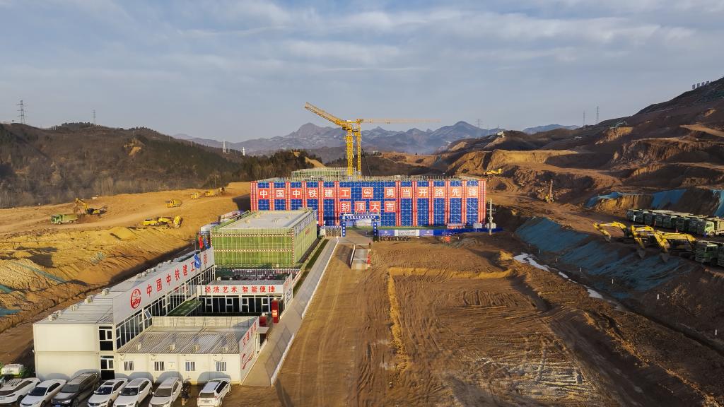 由中铁建工集团承建的西十高铁商洛西站封顶。(受访者供图)