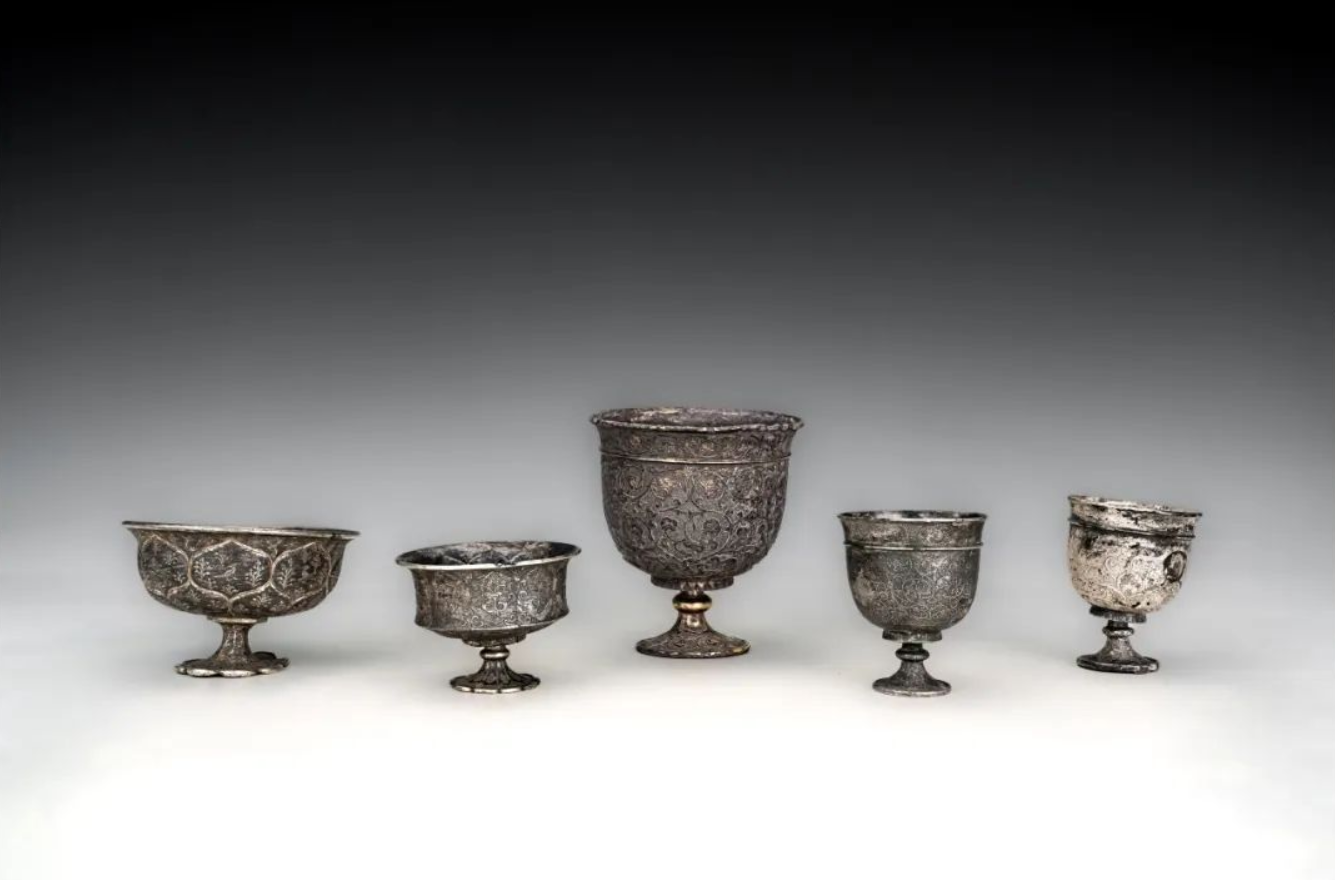 董氏家族墓范围内共出土五件高足堑刻银杯