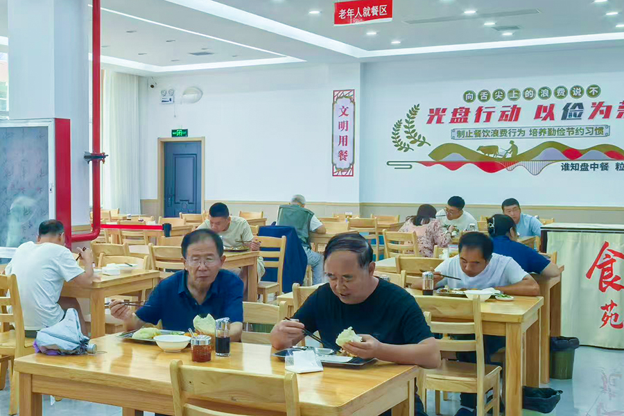 老年人在吴堡县古城路社区食堂就餐。王甜甜 摄