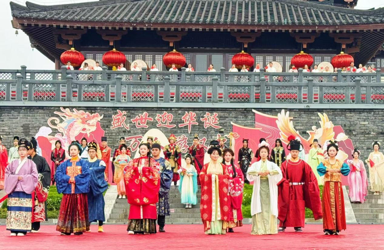 活动现场,数百名汉服爱好者身着秦、汉、唐、宋等各朝代汉服,通过走秀展现汉服演变历史,呈现曲裾深衣的庄重、齐胸襦裙的华美。