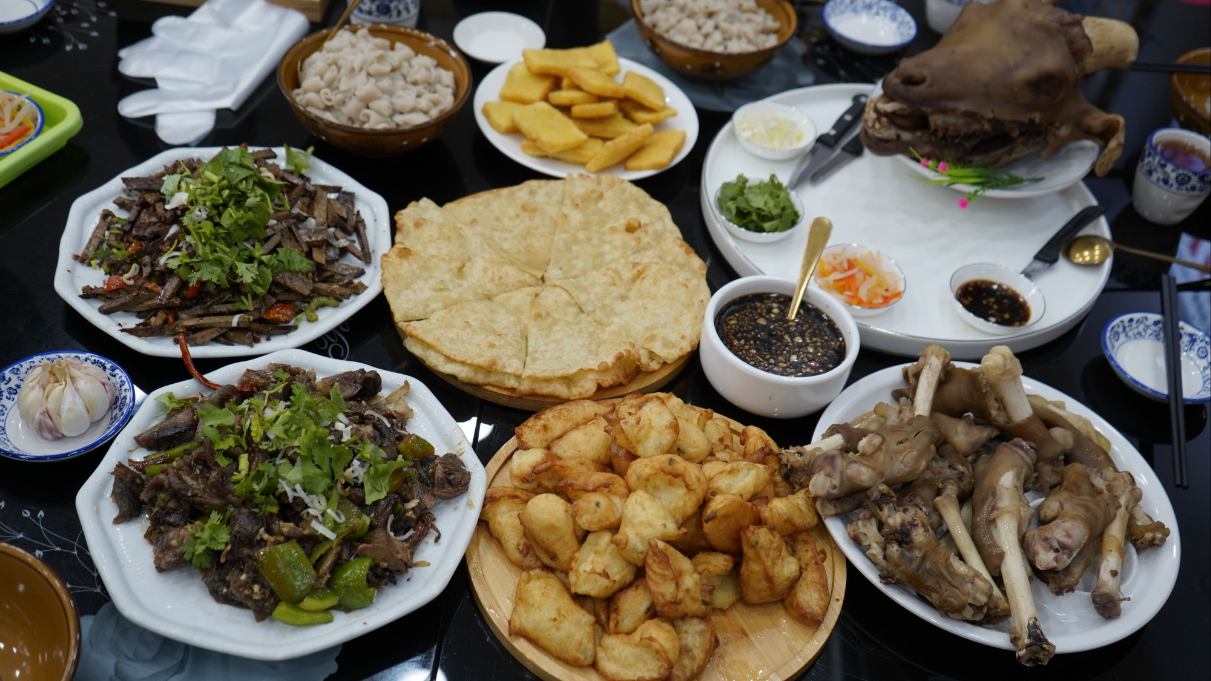 靖边羊杂碎美食搭配主食、小料展示白凌燕摄pagebreak