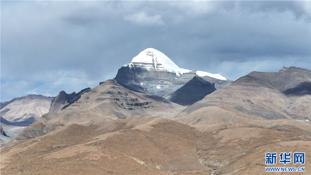 经幡衬托下的冈仁波齐峰。新华网 王智超 摄