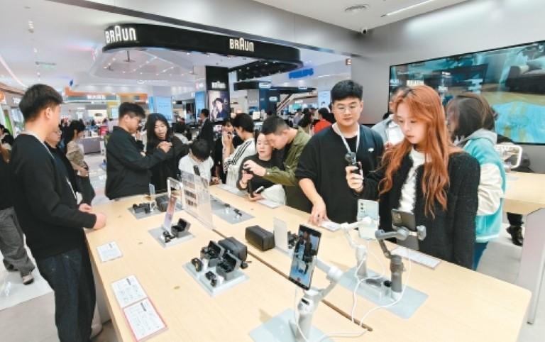西安一商场内,顾客正在挑选电子产品。 (记者 窦翊明摄)