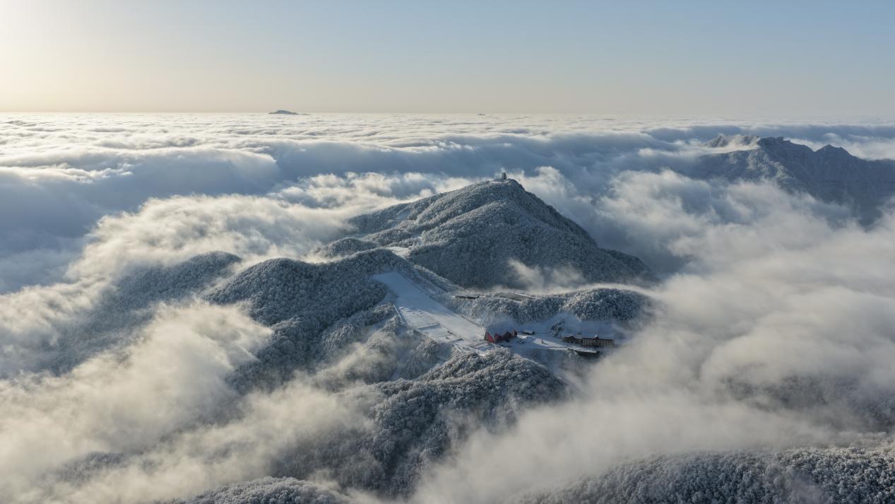 1月23日,汉中龙头山云海似海浪般涌动,环绕雪山。(宋晓丽 摄)pagebreak