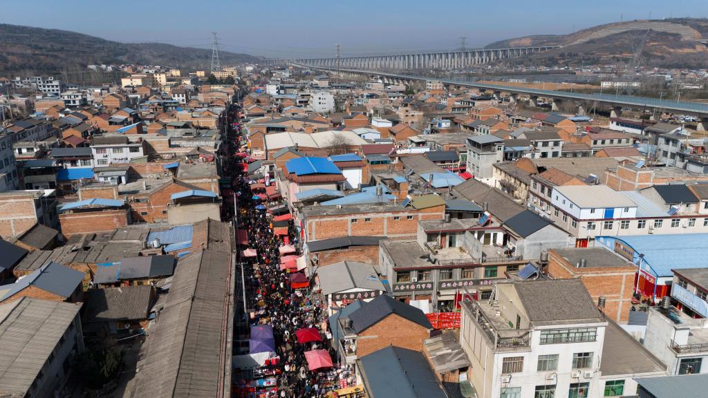 2月13日拍摄的焦岱大集(无人机照片)。