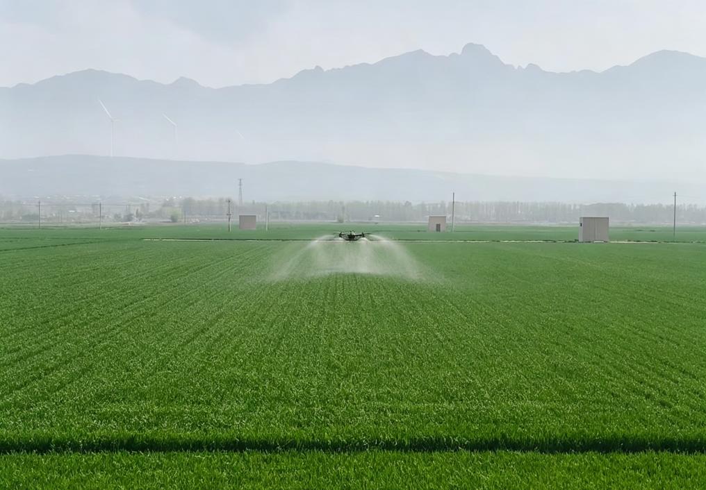 在大伙的关注目光中,只见几架装满杀虫剂、杀菌剂、叶面肥等混合配液的大型植保无人机同时起飞,整齐行进中,喷雾被均匀地洒入田间,不到半天,薛强的所有粮田,就完成了今春第一次病虫害防治。