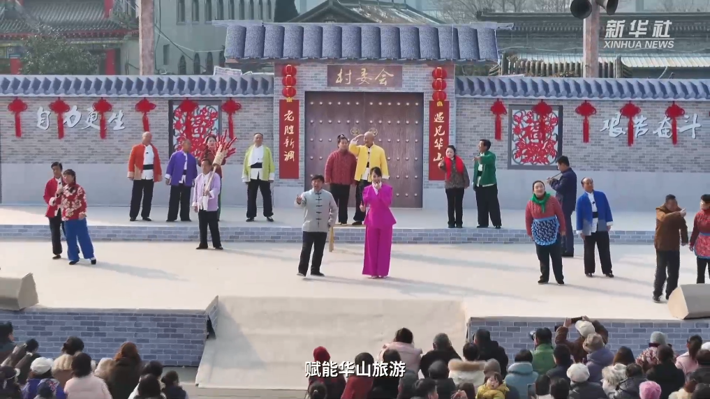 西岳华山脚下,陕西省华阴市“老腔新调·遇见华山”“村晚”在华山镇华山村开演,表演者以本地村民为主,以质朴的热情,演绎浓郁的乡土风情。